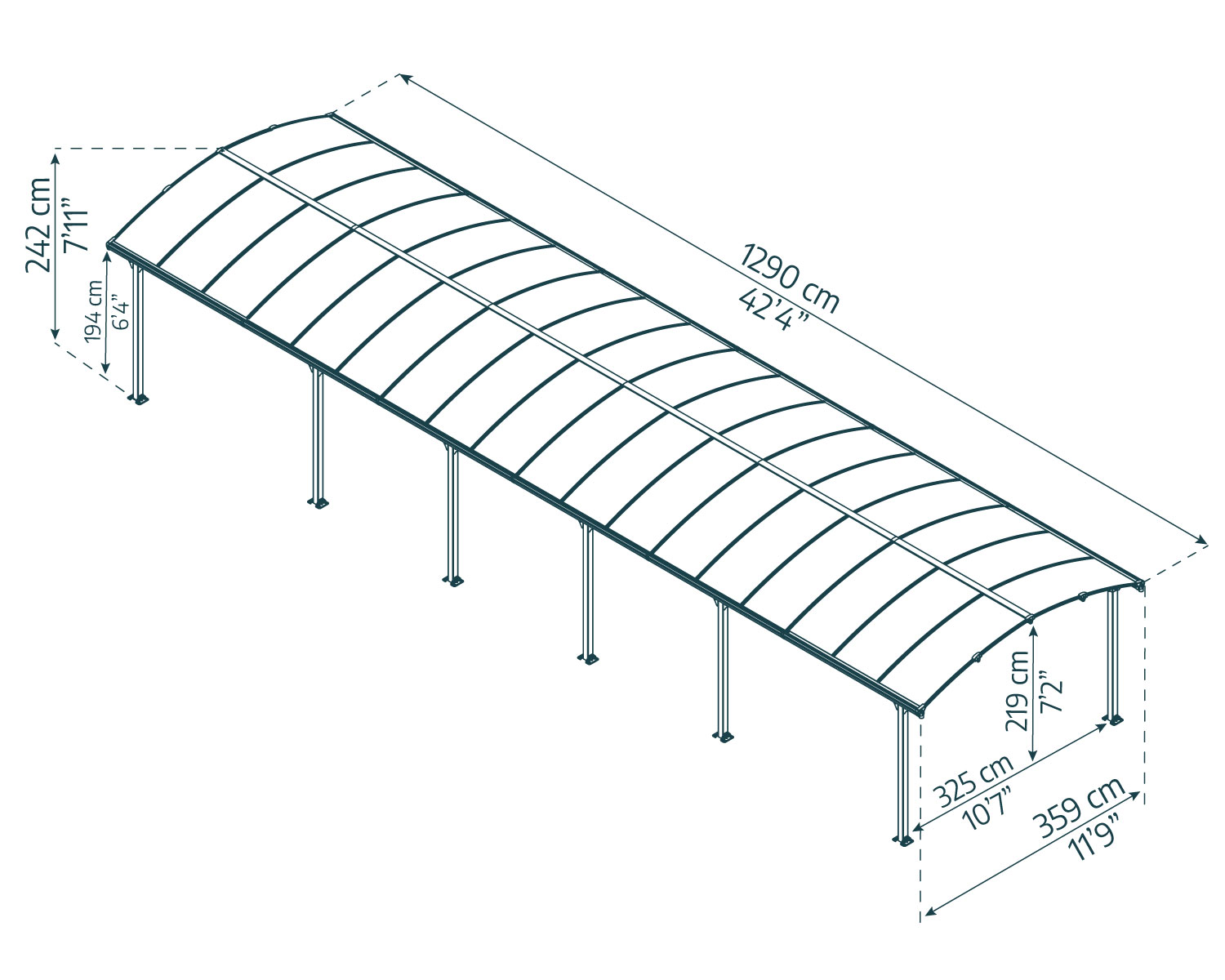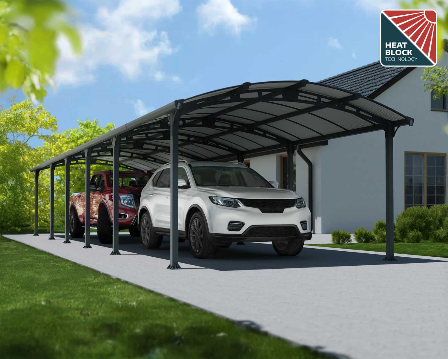 Arcadia 3.6m x 12.9m Carport - Grey Aluminium With Twin-wall Polycarbonate Roof Panels