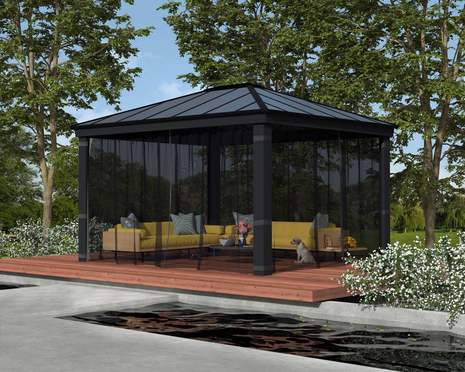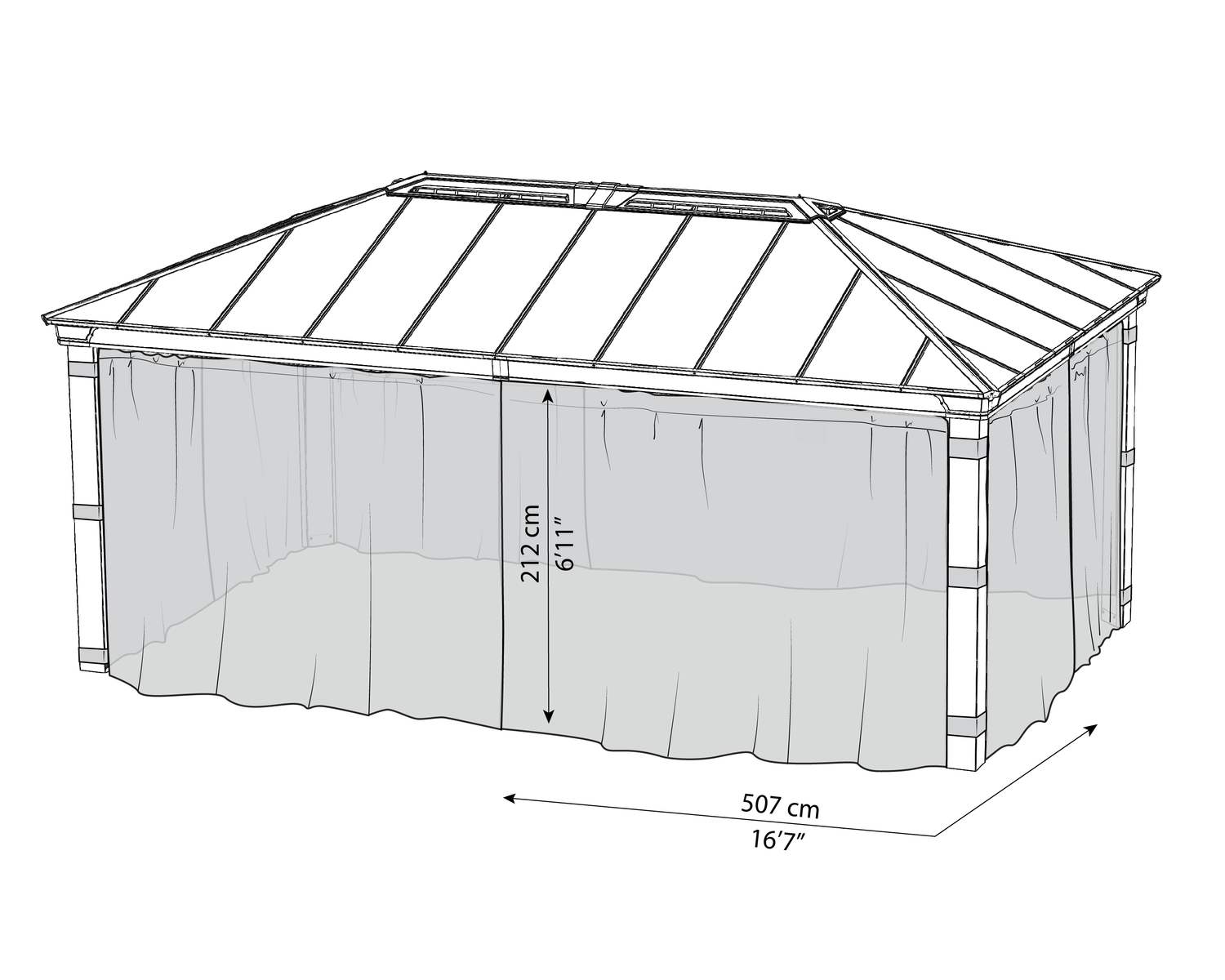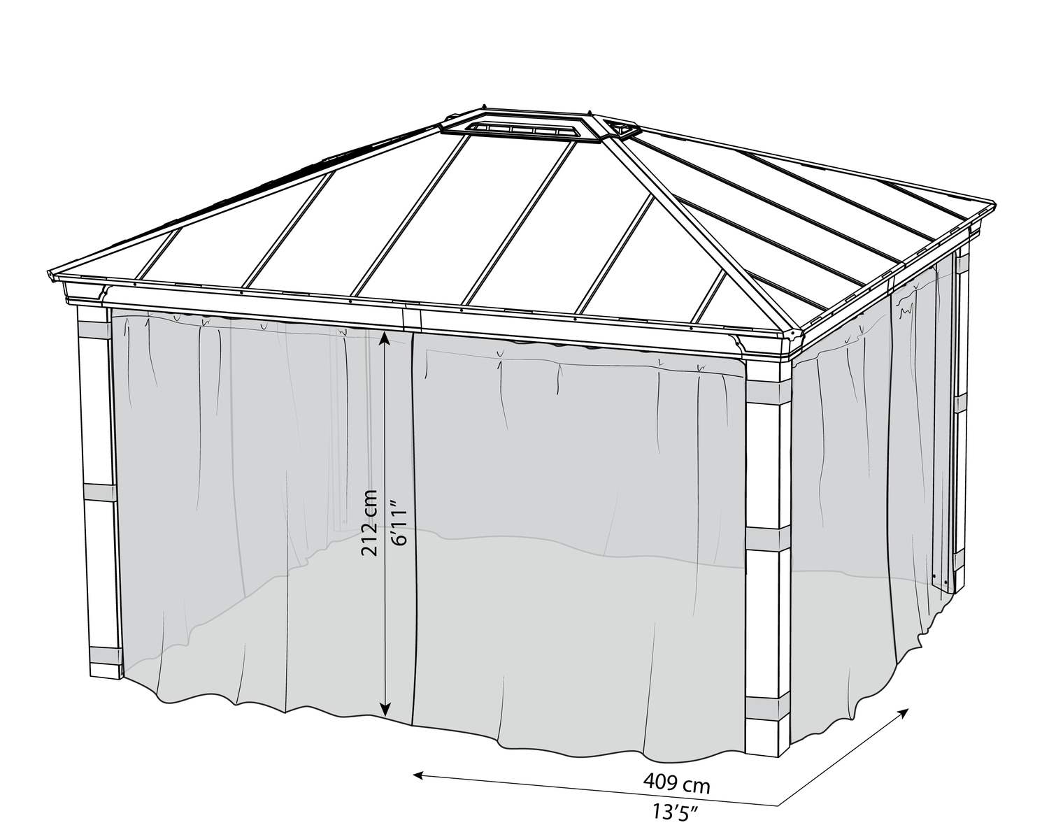 - Easy-to-clip hidden hooks – freely running on the gazebo track line