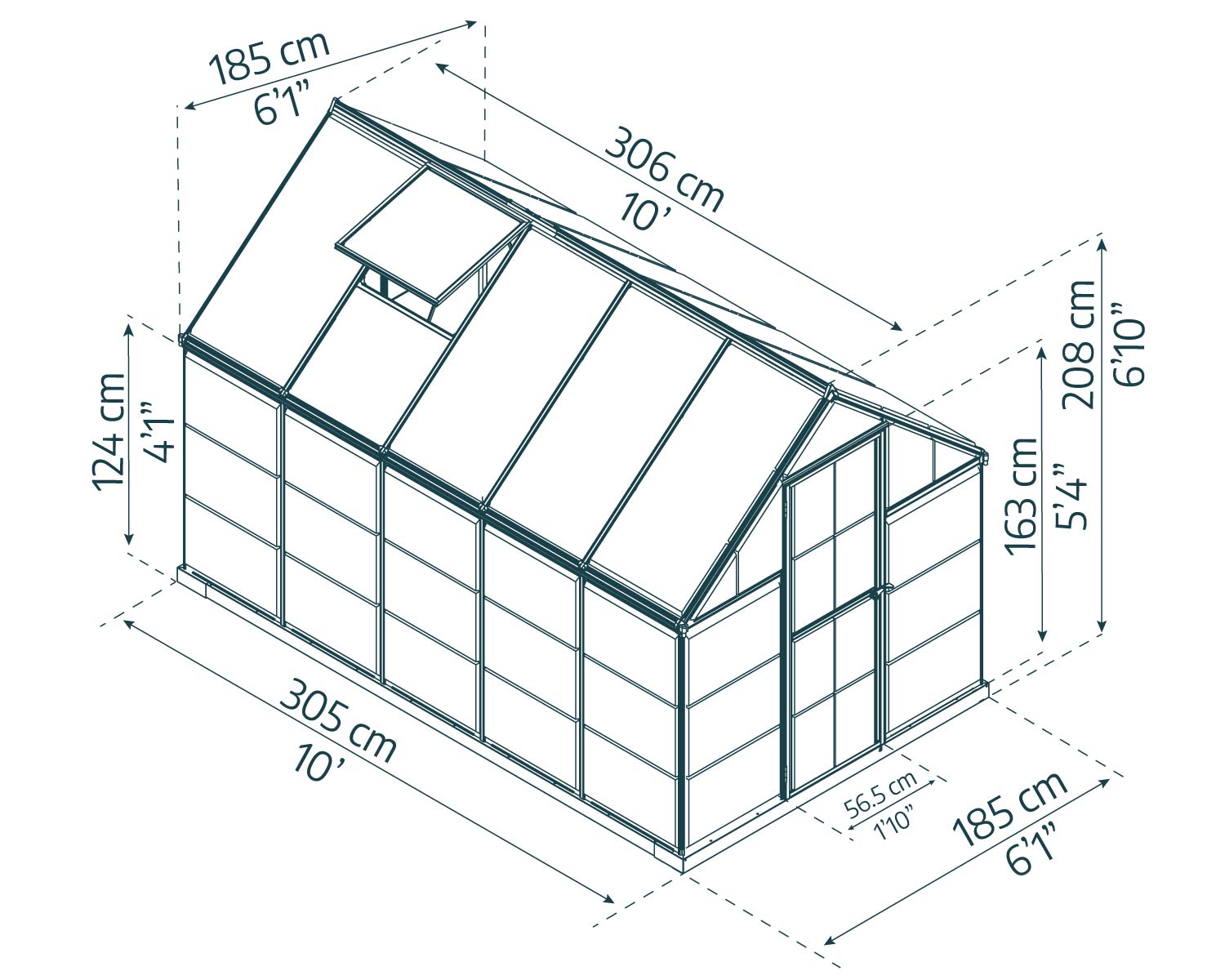 - Diffused Roof Panels: 4 mm twinwall roof panels protect from strong sunlight exposure and extend your season by protecting plants from Fall frosts.