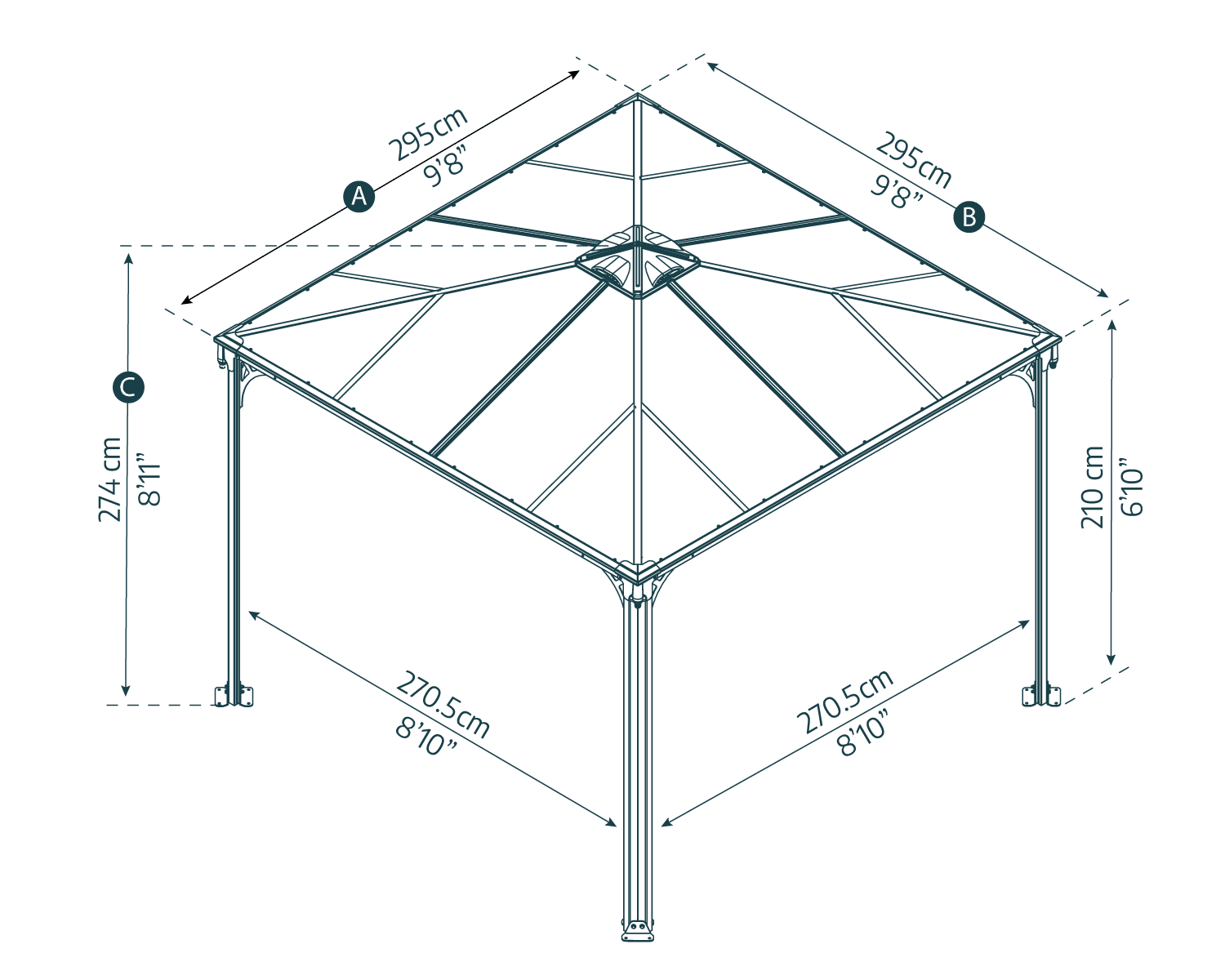 Palermo 2.95m x 2.95m Permanent Gazebo Kit