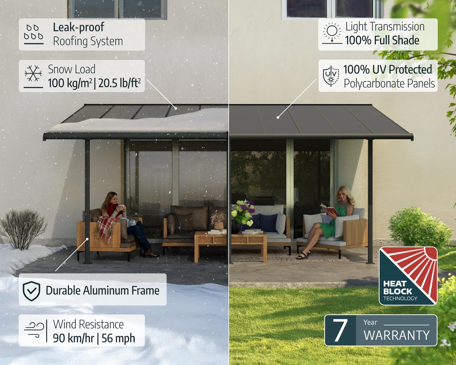 - Safe ultra-durable, polycarbonate patio cover, and multi-functional outdoor structure, designed for superior protection all year-round