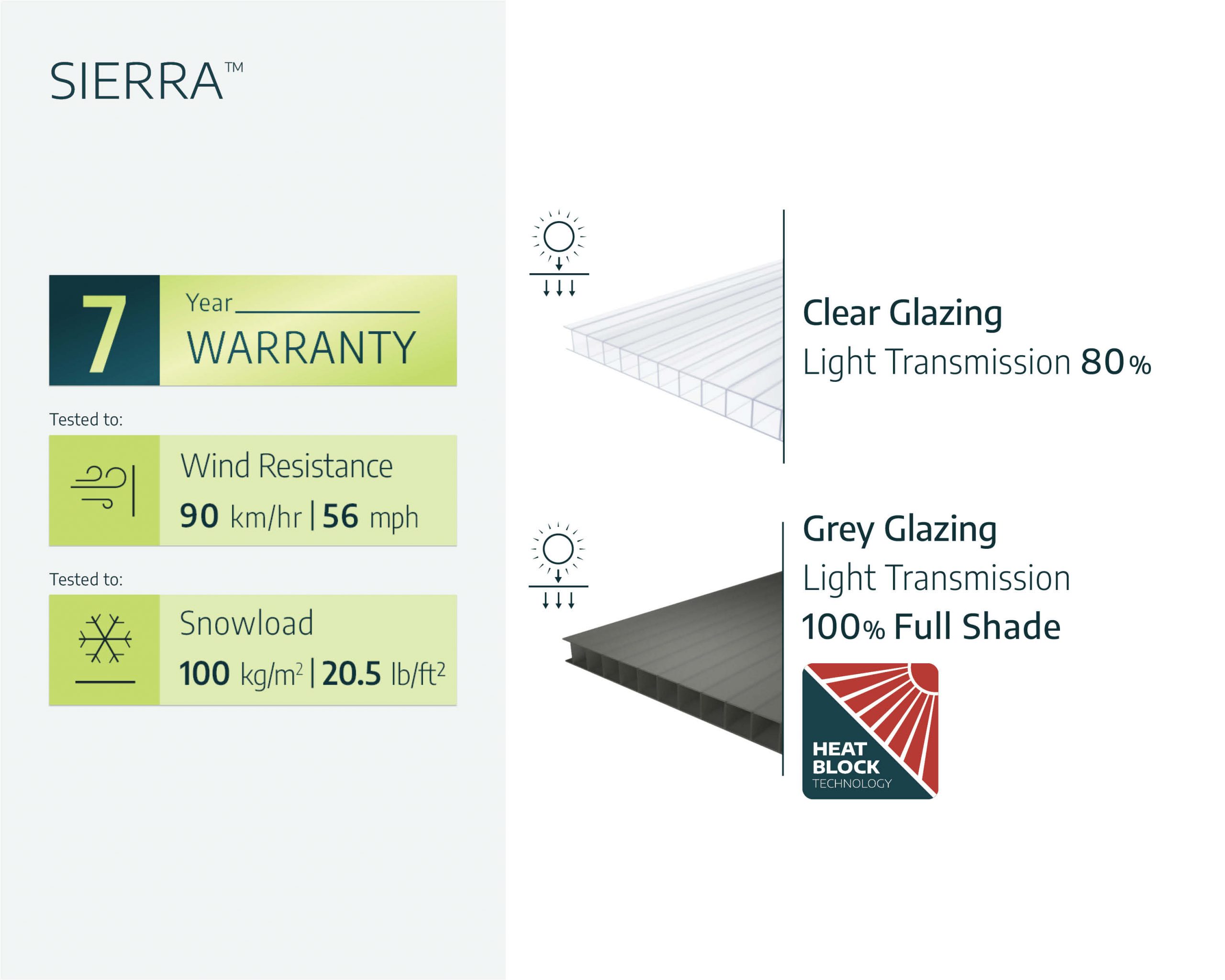 - Life-time resilient polycarbonate glazing; does not fracture, become brittle or turn yellow over time