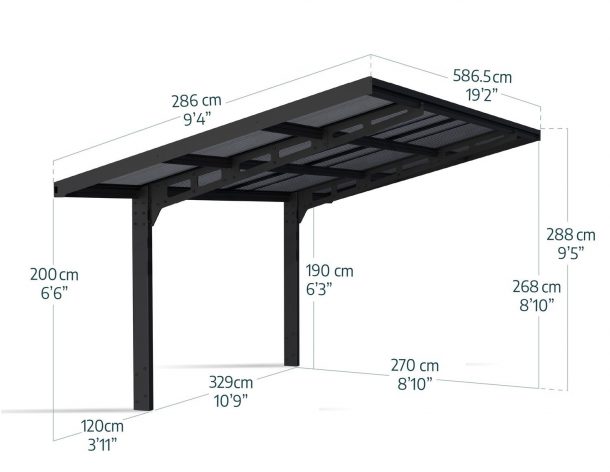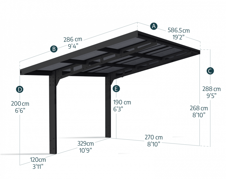 Measuring almost 10 feet wide x 20 feet long, this two-legged car shelter is engineered to withstand volatile weather conditions. The ultra resilient polycarbonate carport includes an internal gutter and is 4 in. wider than competitors. The advantage of the unique design is that the Sydney can be installed as a double carport in an apex or wing shape. Protect your vehicle from snow, hail, wind, and UV-rays in a modern and versatile parking carport.
